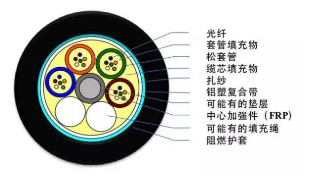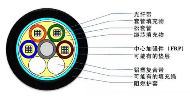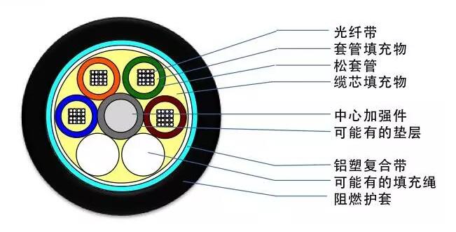 "室外用、非金屬加強(qiáng)件、光纖帶油膏填充、鋁-阻燃聚乙烯外護(hù)套"