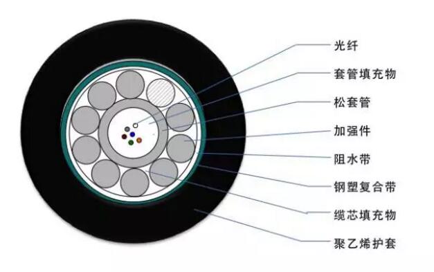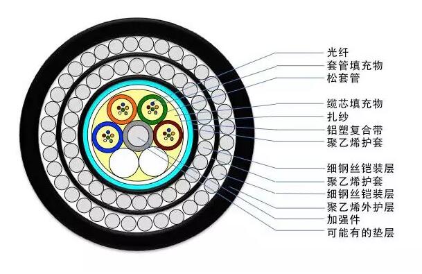 "室外用、油膏填充、光纖帶鋁帶-聚乙烯內(nèi)護(hù)套、細(xì)圓鋼絲鎧裝-聚乙烯外護(hù)套"