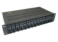 機架式(模塊化)光纖收發(fā)器:安裝于十六槽機箱,采用集中供電方式
